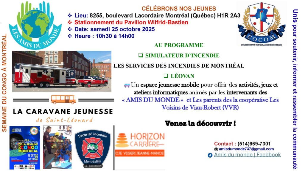 Ainsi, grâce à nos partenaires et commanditaires, nous vous invitons à célébrer la Semaine du Congo Montréal, qui se déroulera du 19 au 26 octobre 2025.