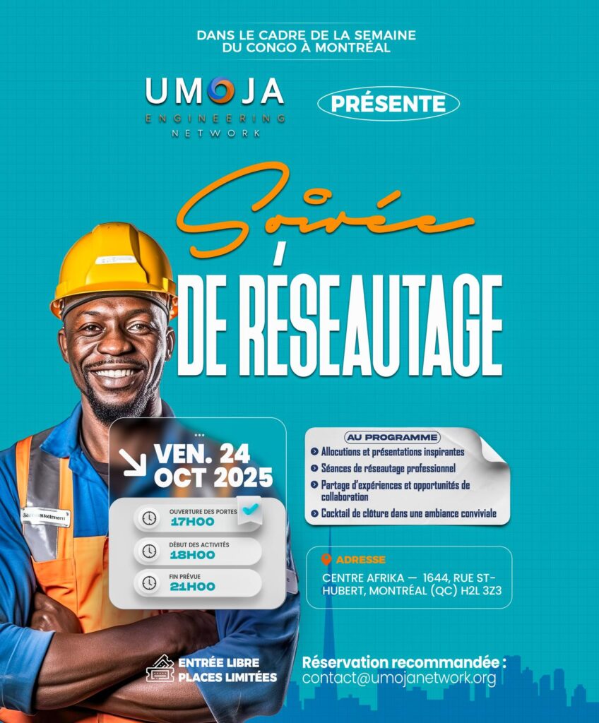 Le Réseau d’Ingénieurs Congolais UMOJA Engineering Network est une plateforme réunissant des professionnels de la diaspora congolaise œuvrant dans les domaines de l’ingénierie, des infrastructures et de l’énergie.