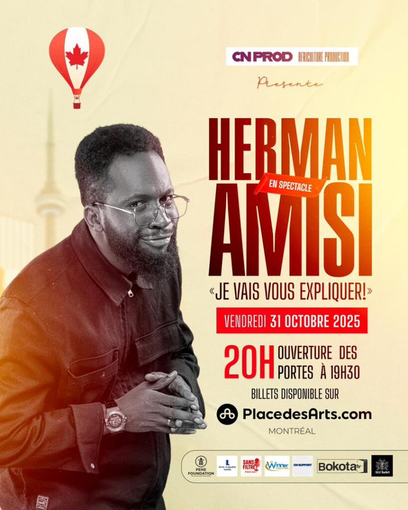 En plus de son engagement culturel à nos côtés, Herman Amisi présentera son spectacle « Je vais vous expliquer ! » le 31 octobre 2025 au Théâtre Maisonneuve de la Place des Arts à Montréal.